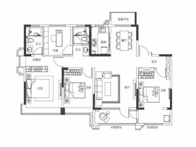 户型齐全,主打南北通透,全明格局三居