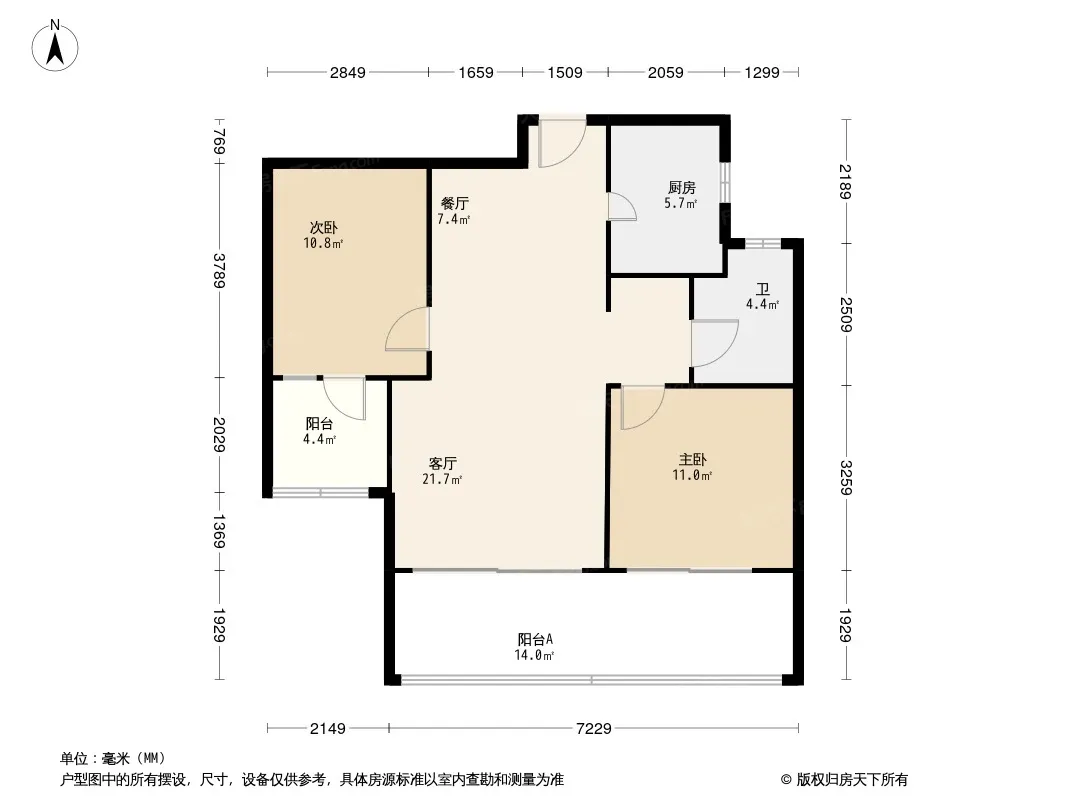 户型齐全,主打南北通透,全明格局三居
