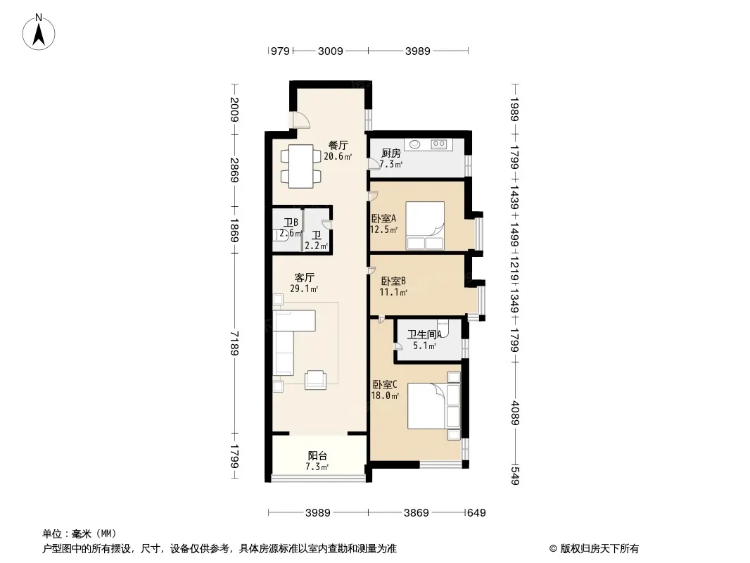 户型齐全,主打明卫,明厨,客厅朝南,全明格局三居