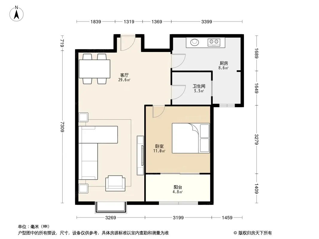 户型齐全,主打客厅朝南,主卧朝南二居