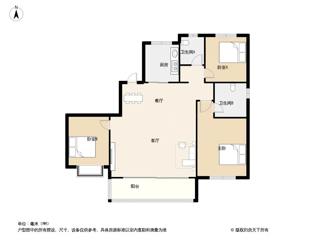 户型齐全,主打南北通透,客厅朝南三居