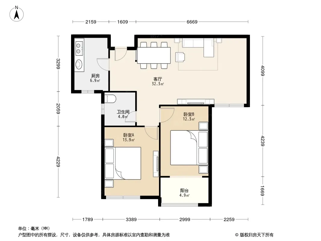 户型齐全,主打户型方正,明厨,客厅朝南二居