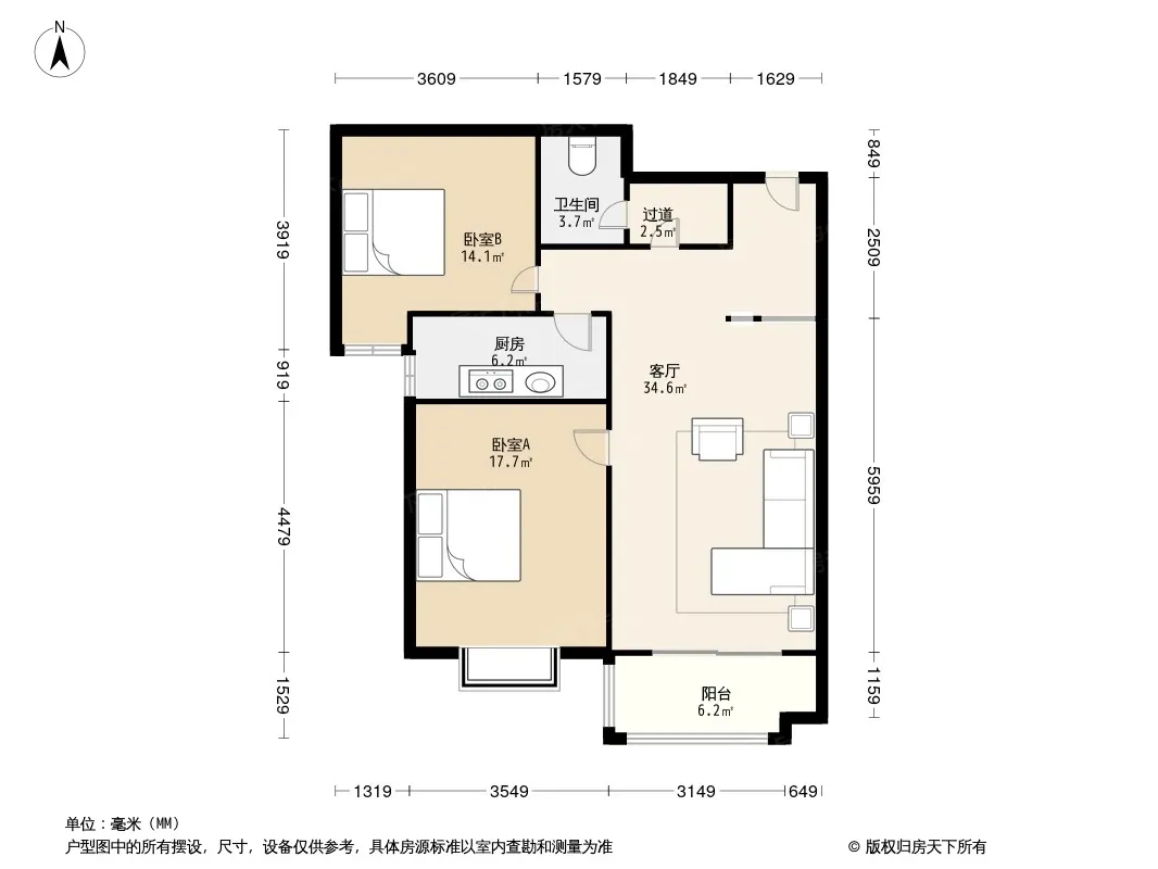 户型齐全,主打户型方正,明厨,双卧朝南,主卧朝南二居