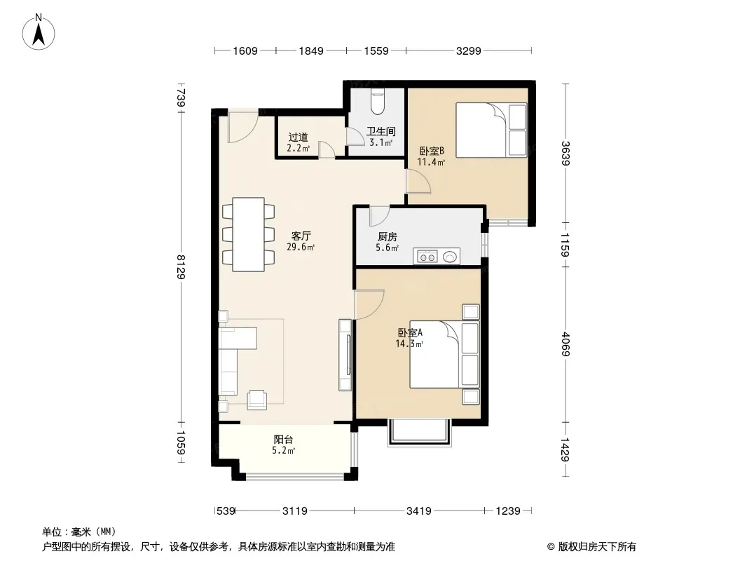 户型齐全,主打户型方正,明厨,双卧朝南,主卧朝南二居