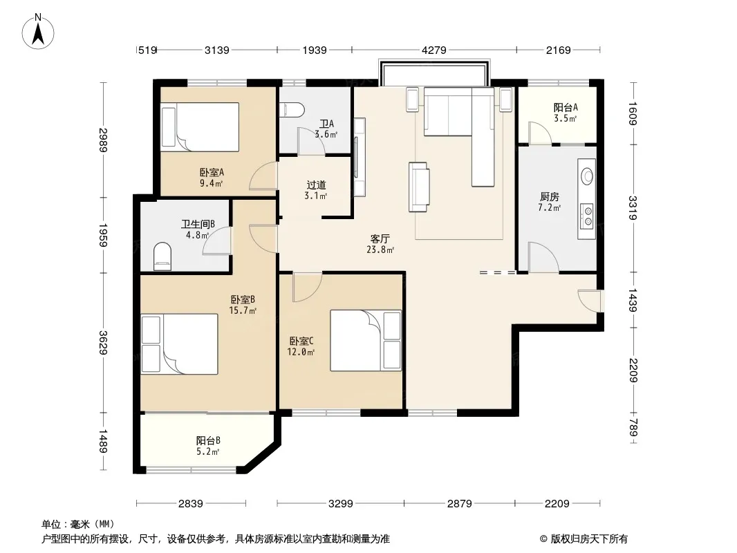 济发泉星 3室1厅 南 北