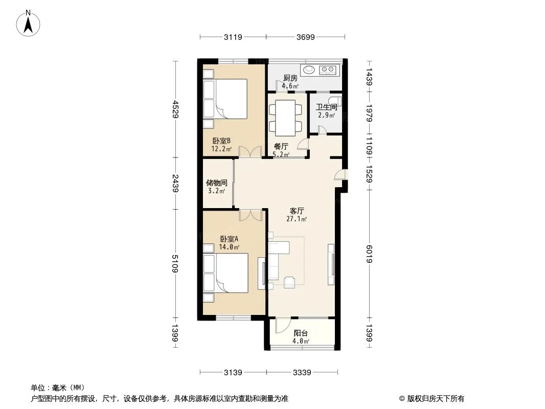 户型齐全,主打户型方正,明卫,明厨,客厅朝南二居