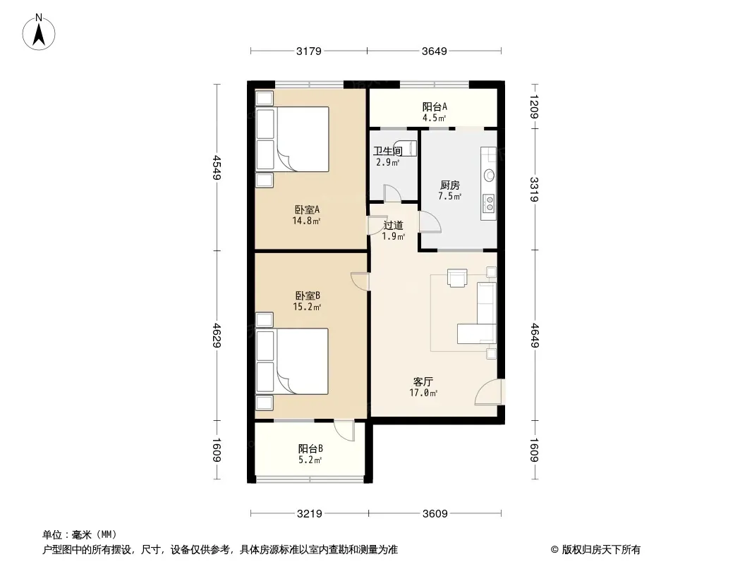 户型齐全,主打户型方正,明卫,明厨,客厅朝南二居