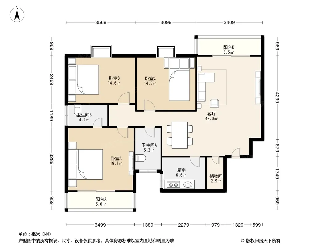 户型齐全,主打户型方正,明厨,明卫,客厅朝南,双阳台三居