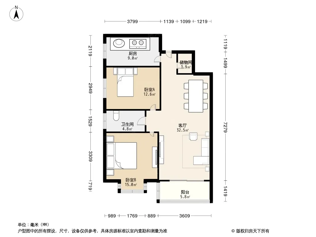 户型齐全,主打户型方正,明厨,明卫,客厅朝南,双阳台三居