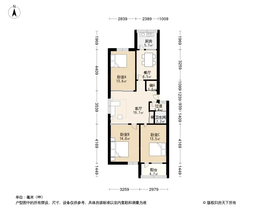 单位宿舍标准三室两一厅南北通透全明户型