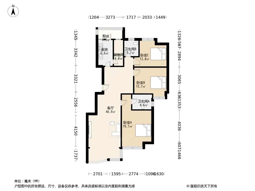 户型齐全,主打明卫,客厅朝南,双卧朝南,主卧朝南三居