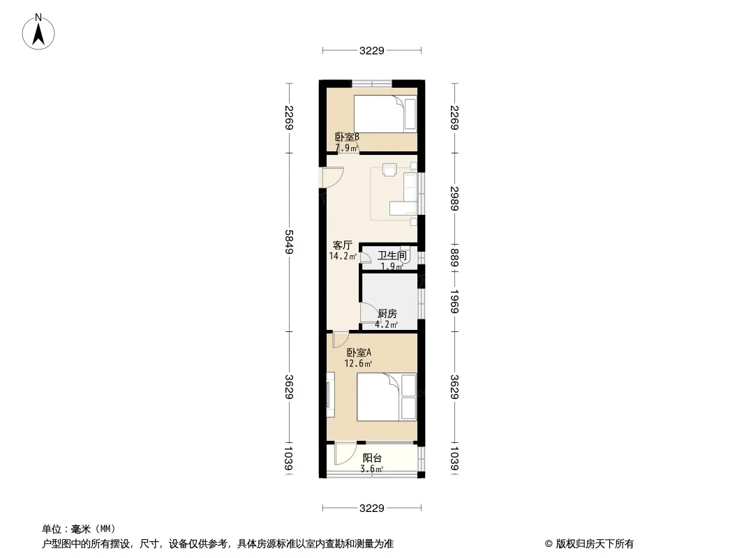 户型齐全,主打户型方正,明厨,主卧朝南二居