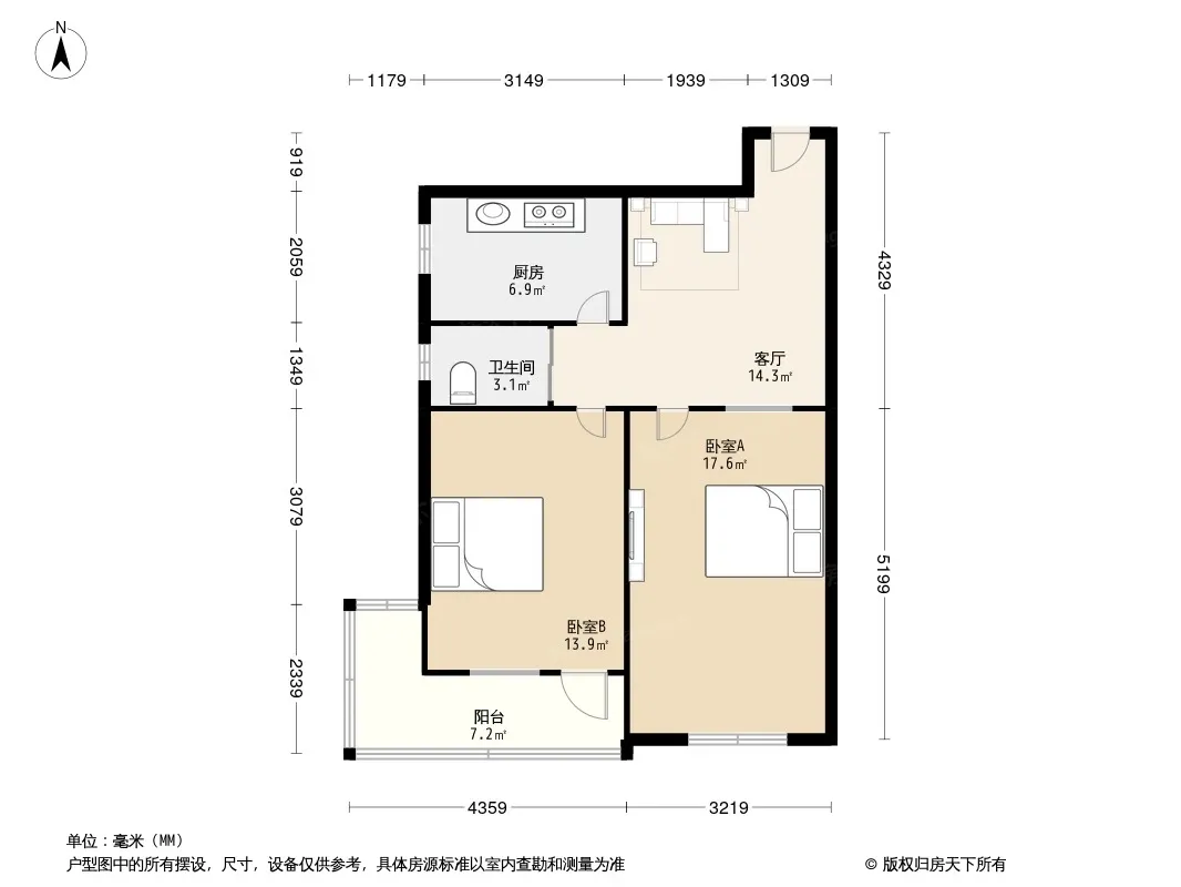 户型齐全,主打明卫,客厅朝南,双阳台二居