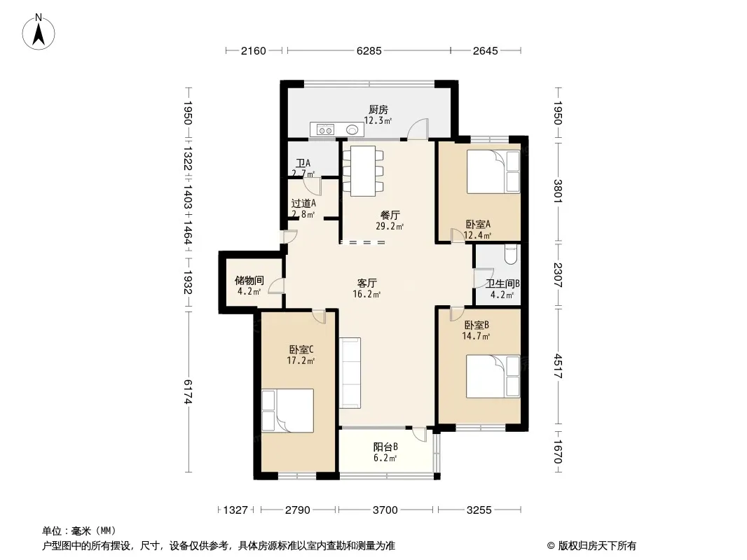 户型齐全,主打户型方正,明厨,双卧朝南,主卧朝南三居