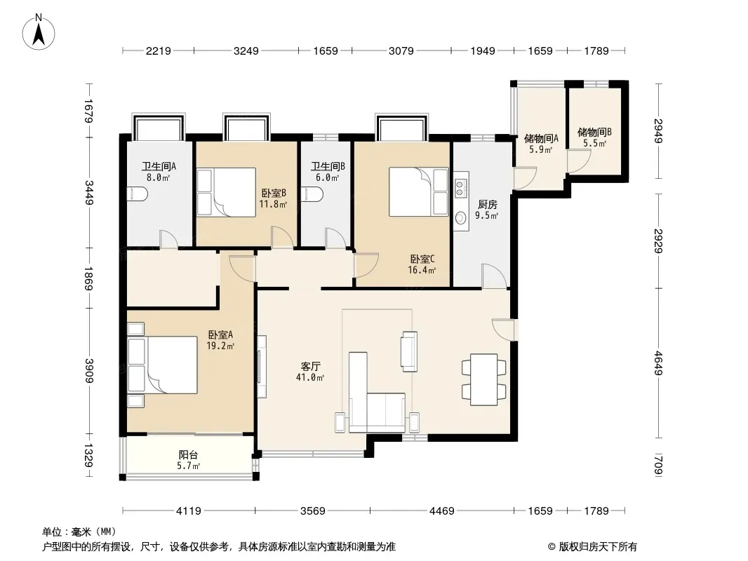 户型齐全,主打客厅朝南,主卧朝南三居