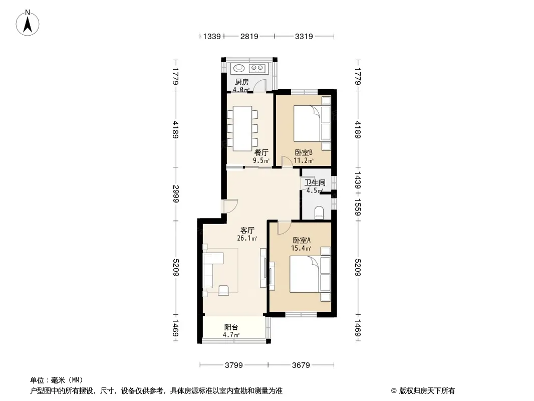 户型齐全,主打明卫,明厨,客厅朝南,全明格局,主卧朝南二居