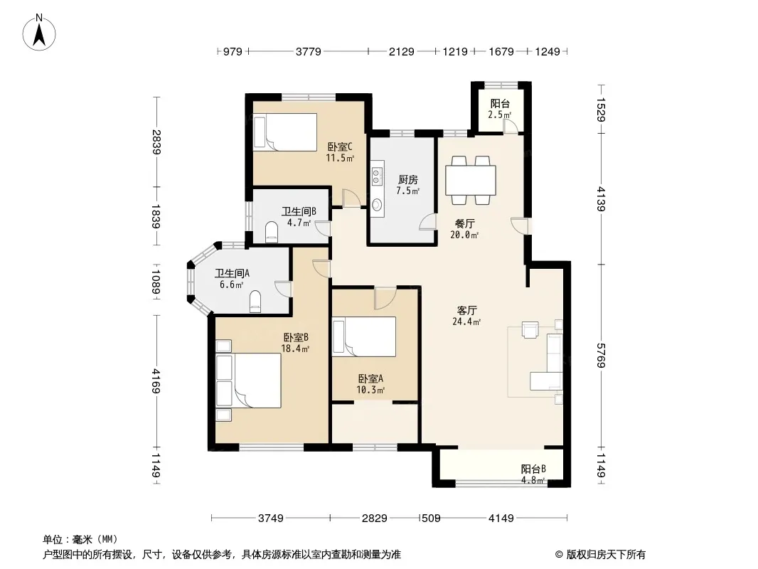 户型齐全,主打南北通透,全明格局四居
