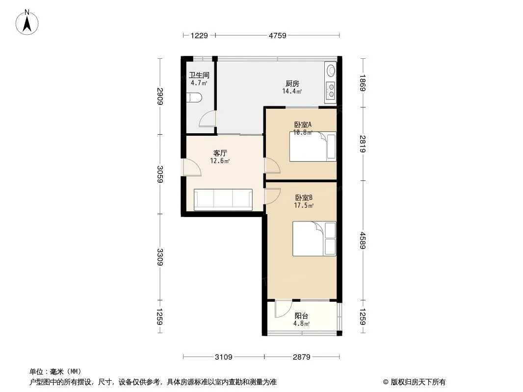 济柴九宿舍 2室1厅 南 北