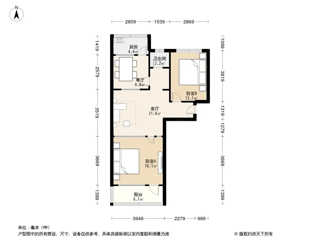户型齐全,主打明厨,客厅朝南,主卧朝南二居