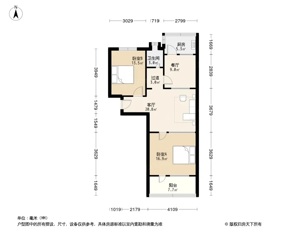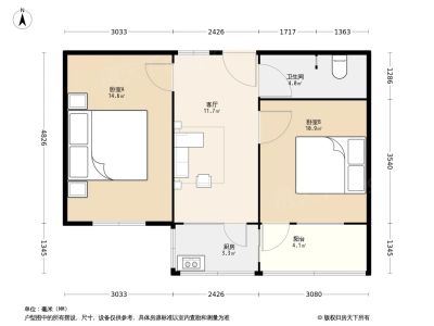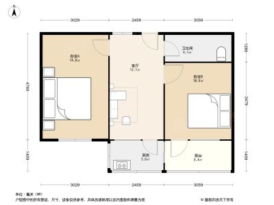 户型齐全,主打明厨,客厅朝南,主卧朝南二居
