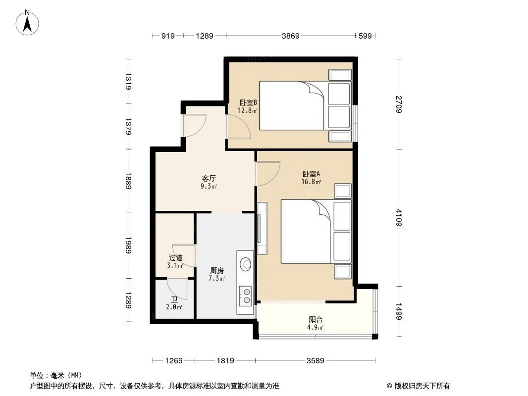 户型齐全,主打户型方正,明厨,明卫,客厅朝南二居