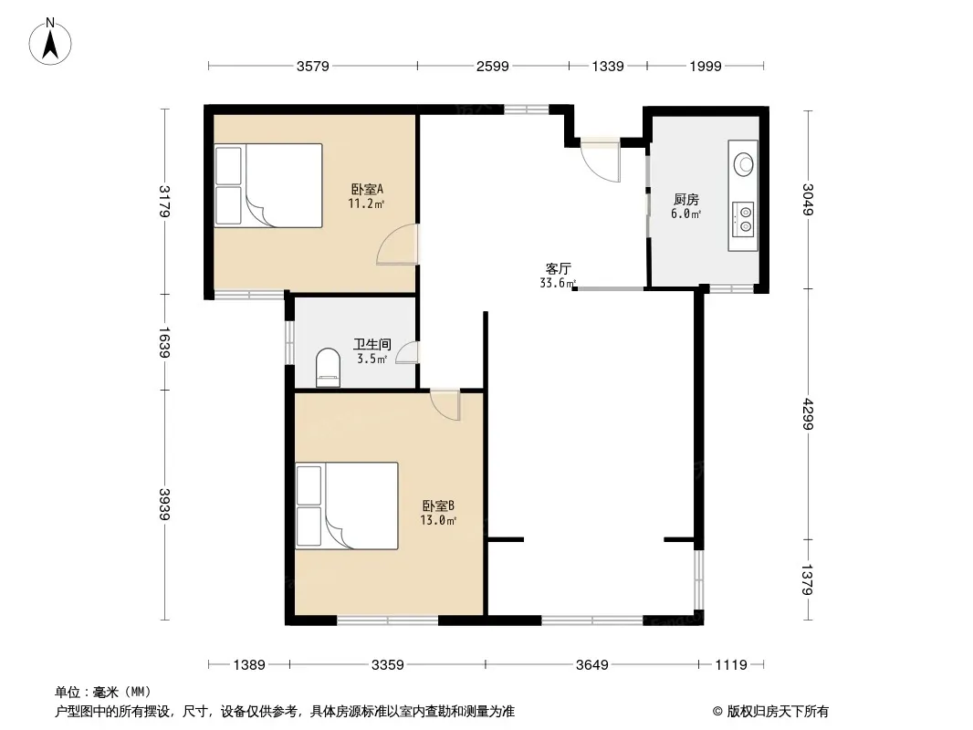 户型齐全,主打户型方正,明厨,明卫,双卧朝南,主卧朝南二居