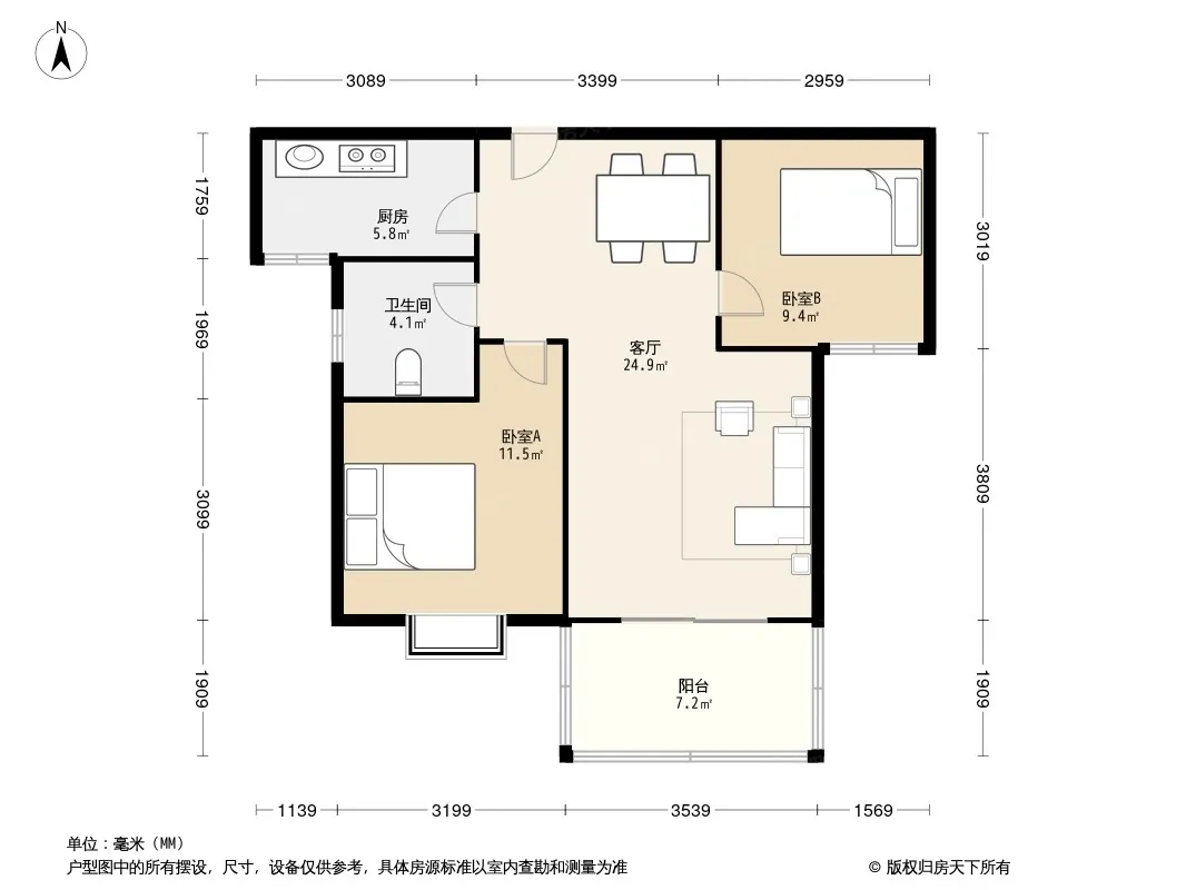 户型齐全,主打户型方正,双卧朝南二居
