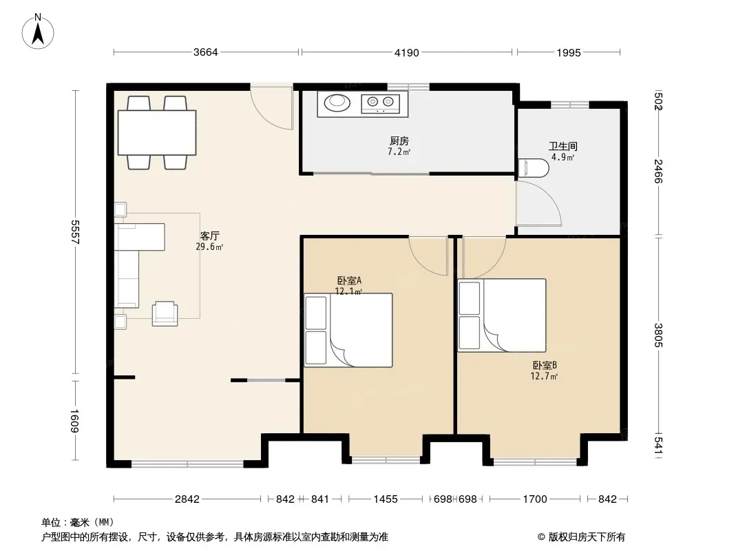 户型齐全,主打户型方正,明卫,明厨,主卧朝南三居