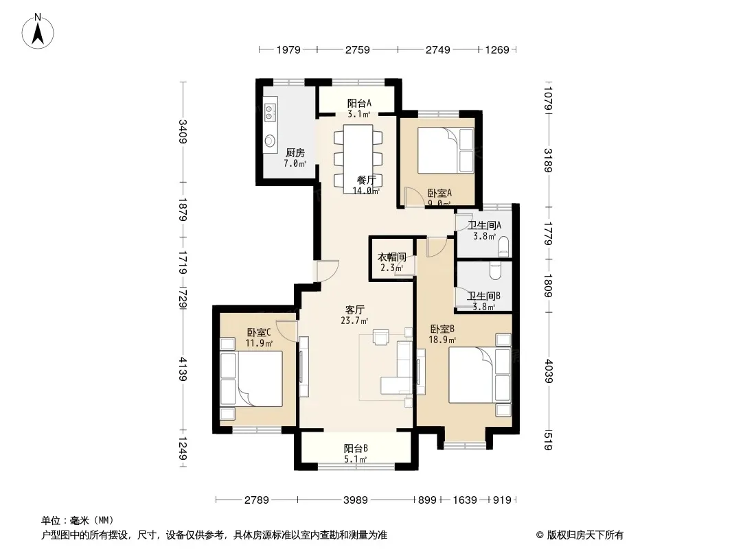 户型齐全,主打南北通透,全明格局三居