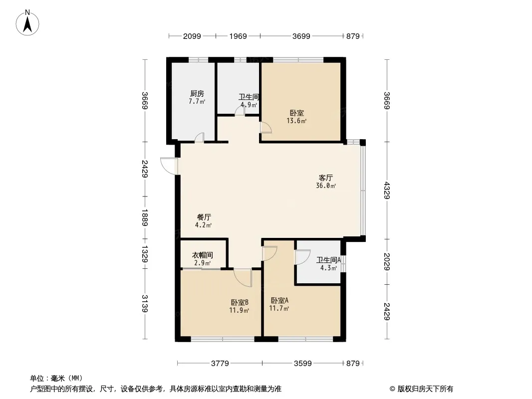 户型齐全,主打南北通透,全明格局三居