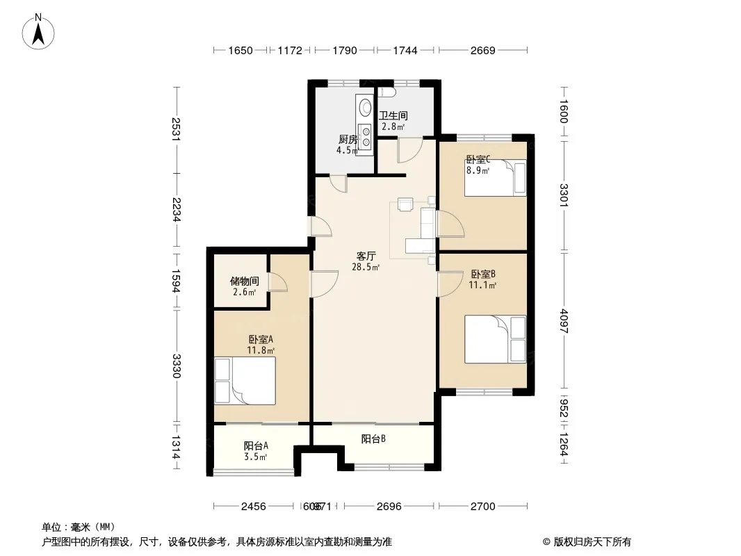 户型齐全,主打户型方正,明卫,明厨,主卧朝南三居