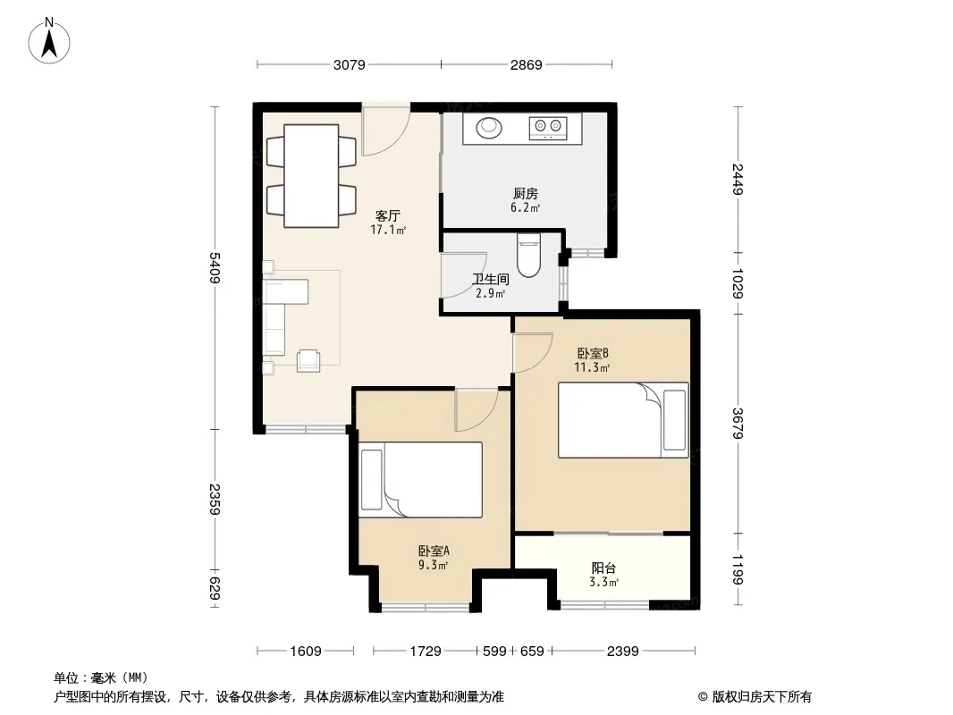 户型齐全,主打户型方正,明卫,明厨,主卧朝南三居