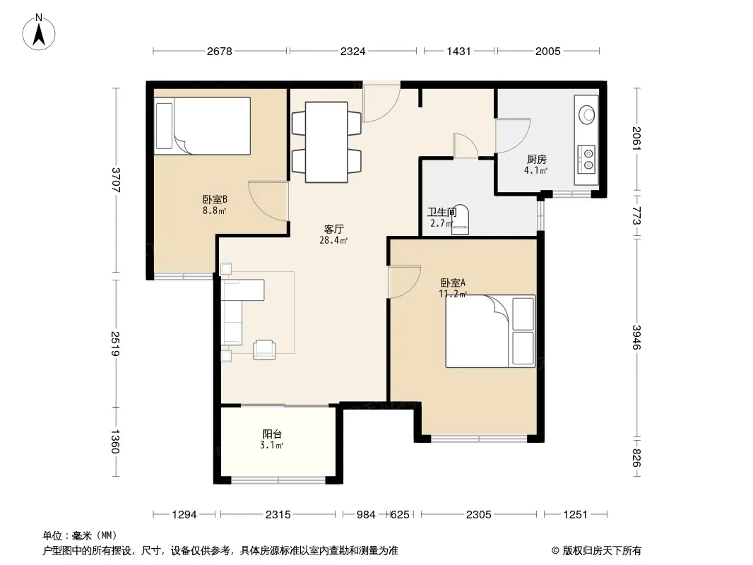 户型齐全,主打户型方正,明卫,明厨,主卧朝南三居