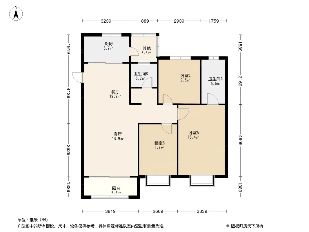 户型齐全,主打南北通透,户型方正三居