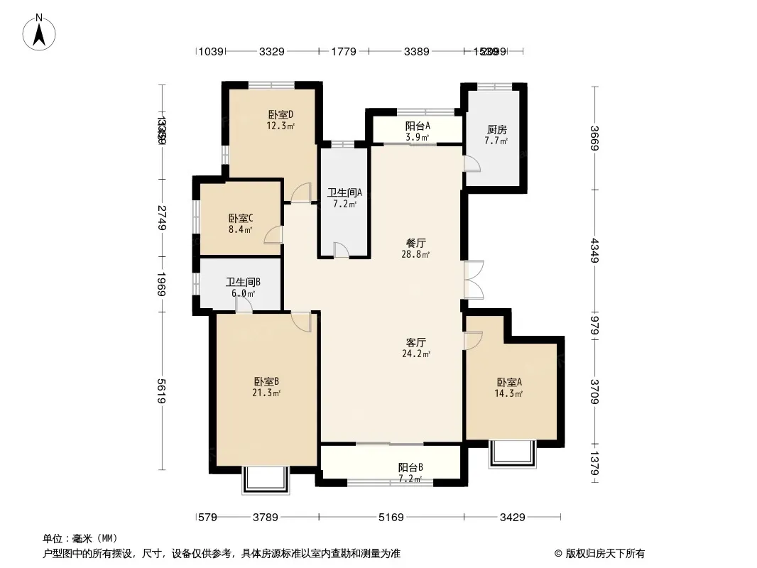 户型齐全,主打南北通透,户型方正三居