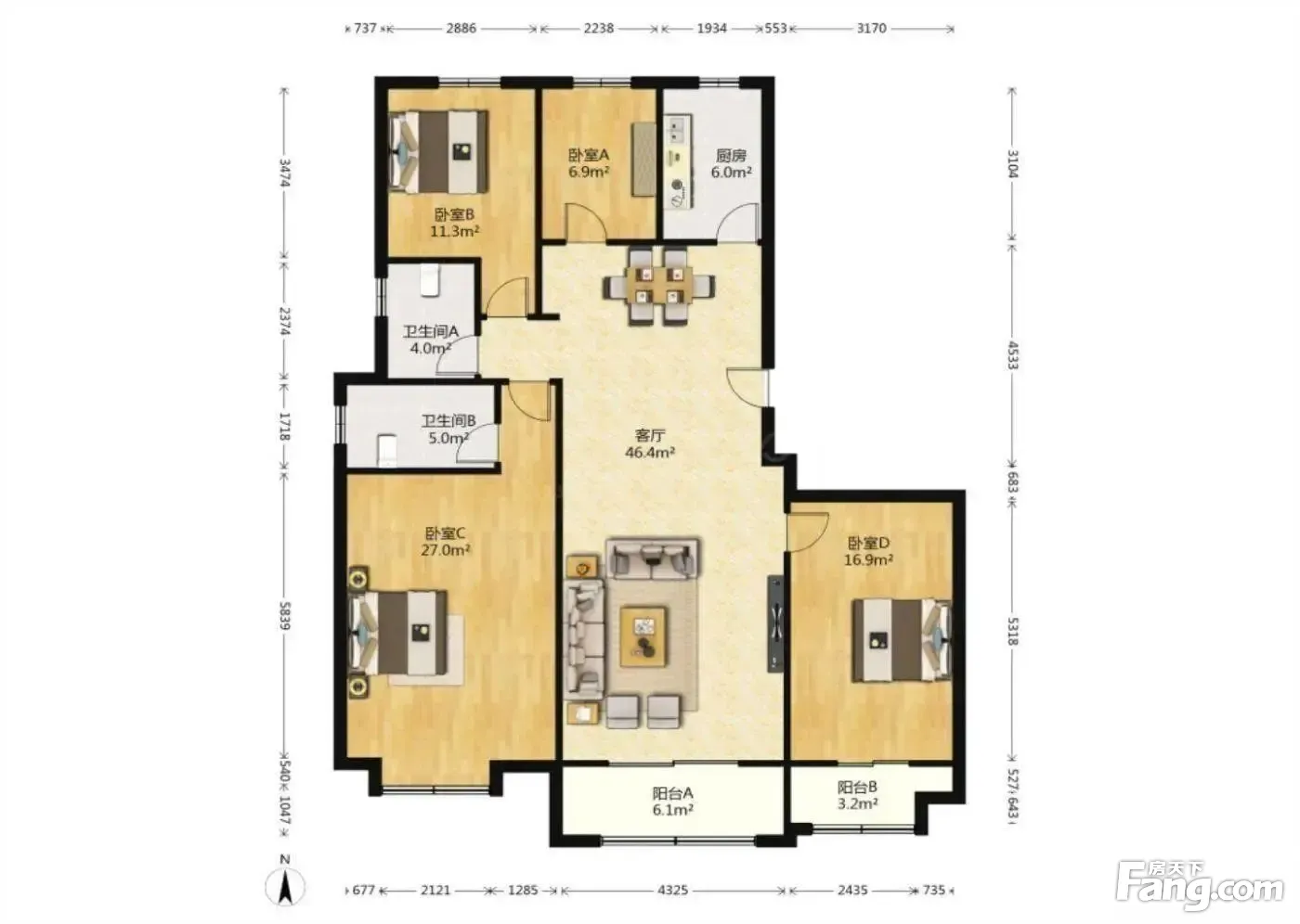 户型齐全,主打南北通透,全明格局四居