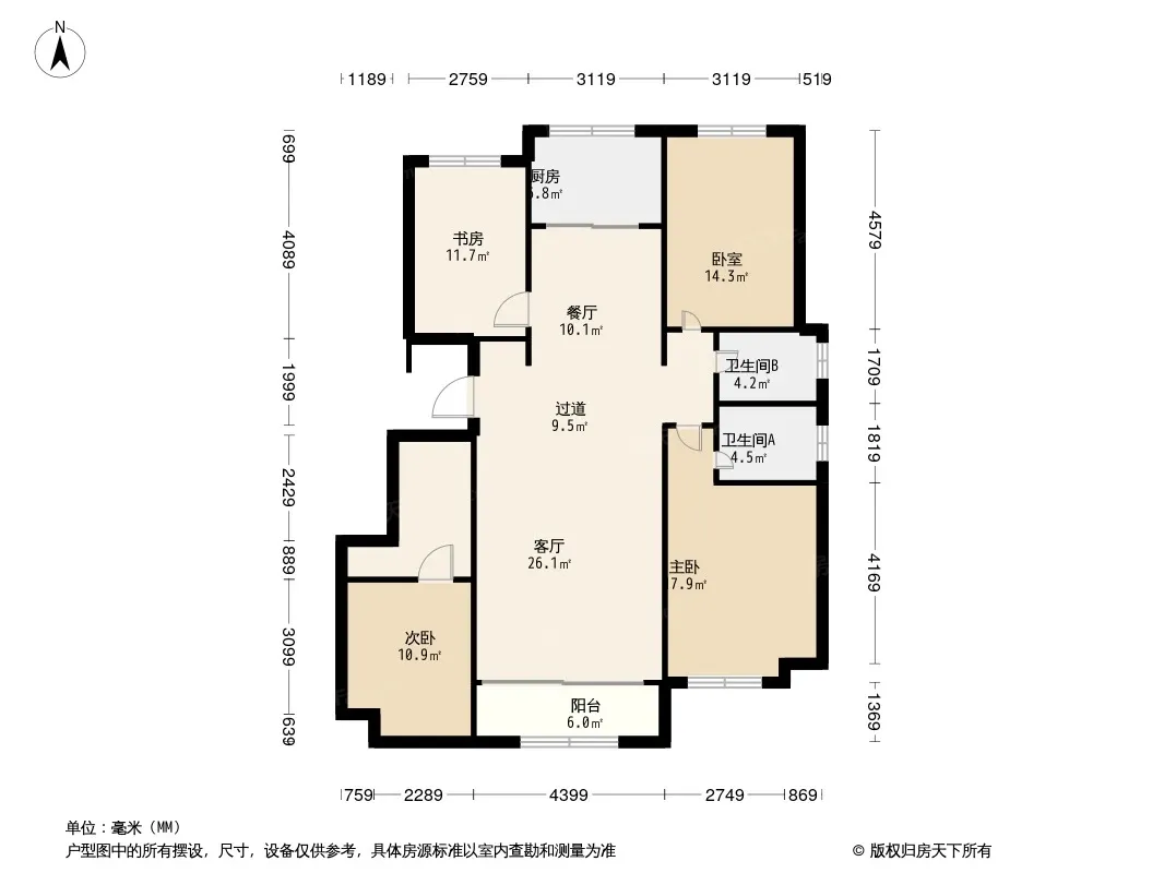 户型齐全,主打南北通透,主卧朝南三居
