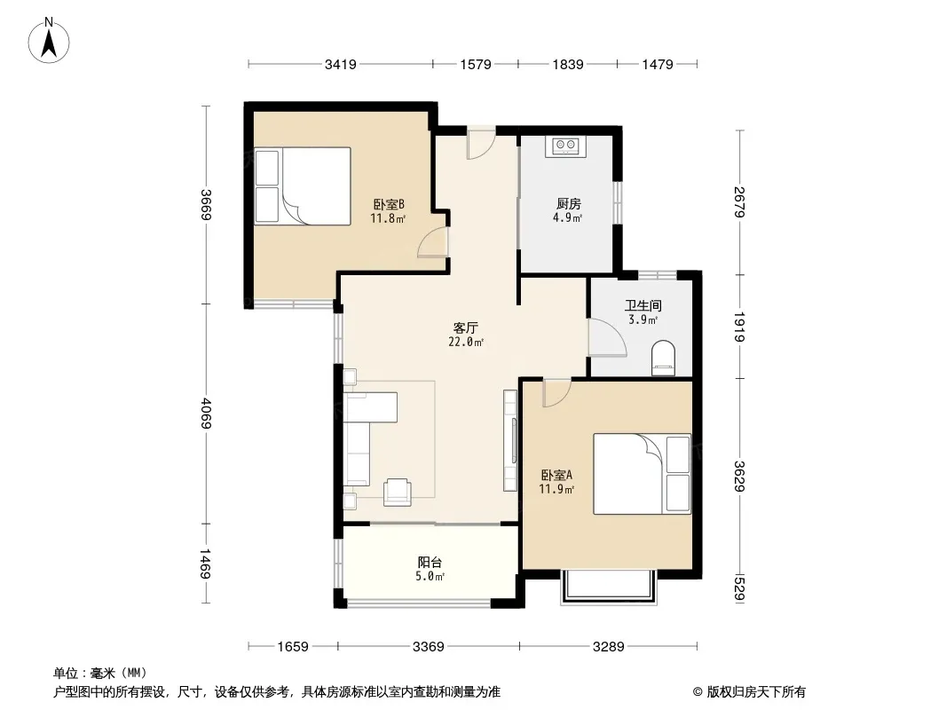 户型齐全,主打南北通透,全明格局三居