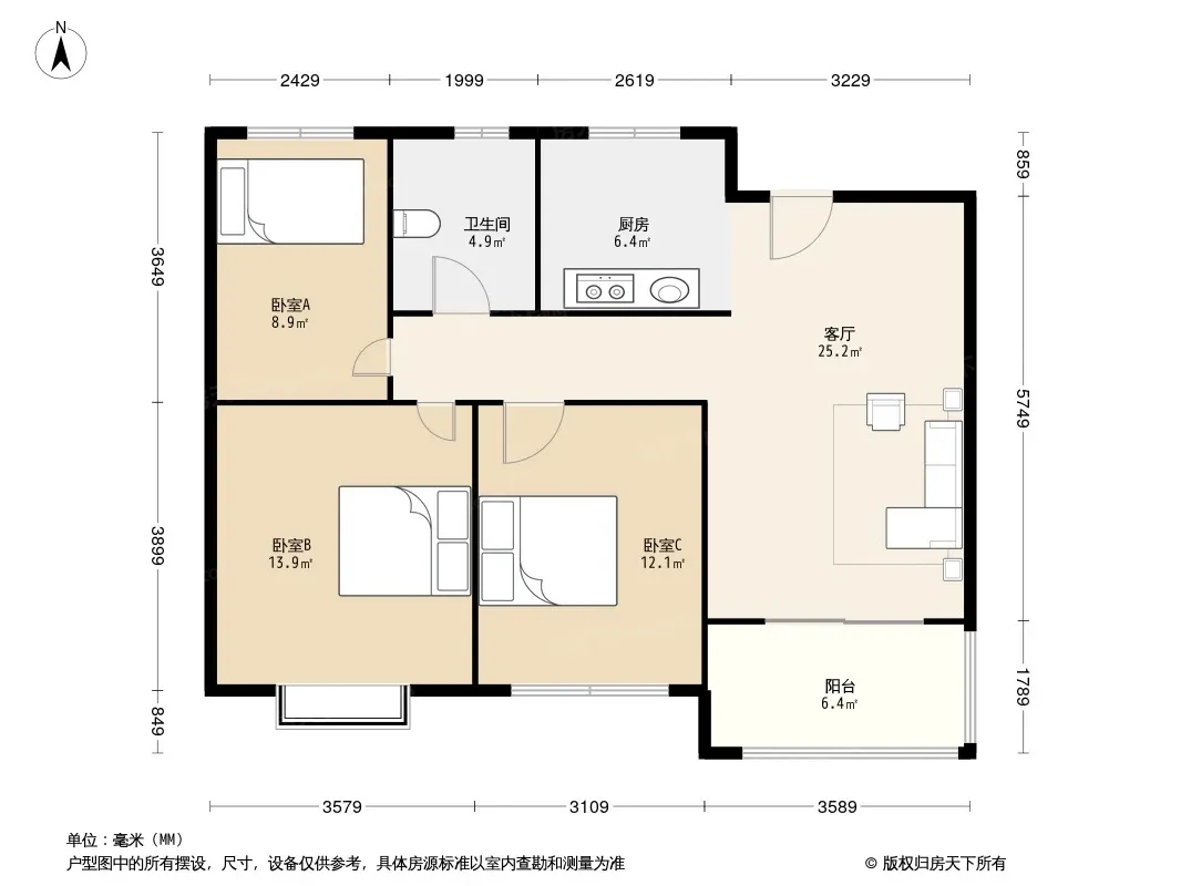 户型齐全,主打南北通透,全明格局三居