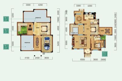 户型齐全,主打独立车库,主卧朝南二居
