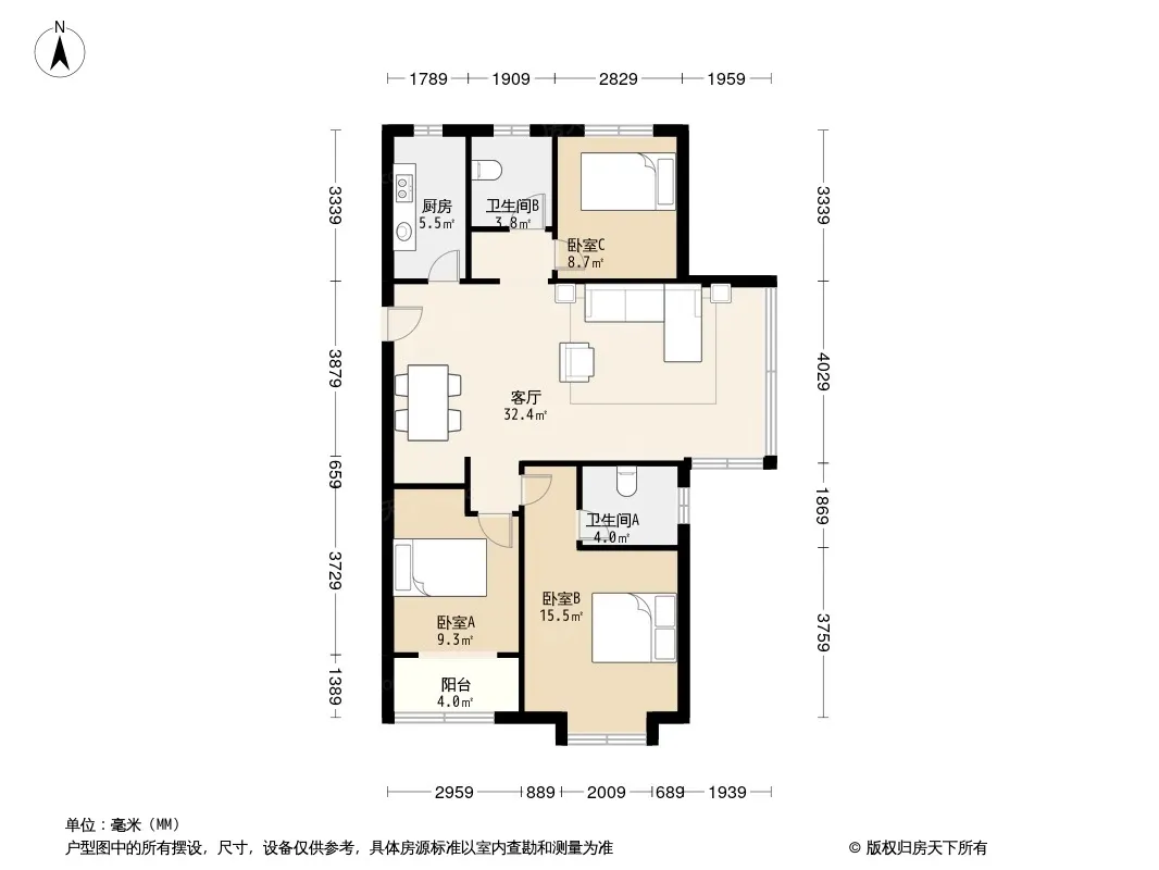 户型齐全,主打南北通透,全明格局三居