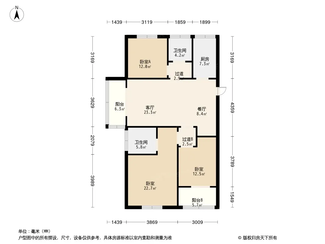 户型齐全,主打南北通透,全明格局三居