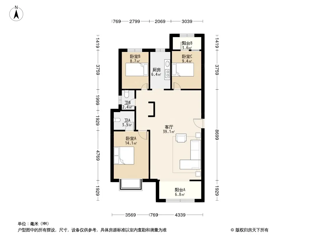户型齐全,主打南北通透,全明格局三居