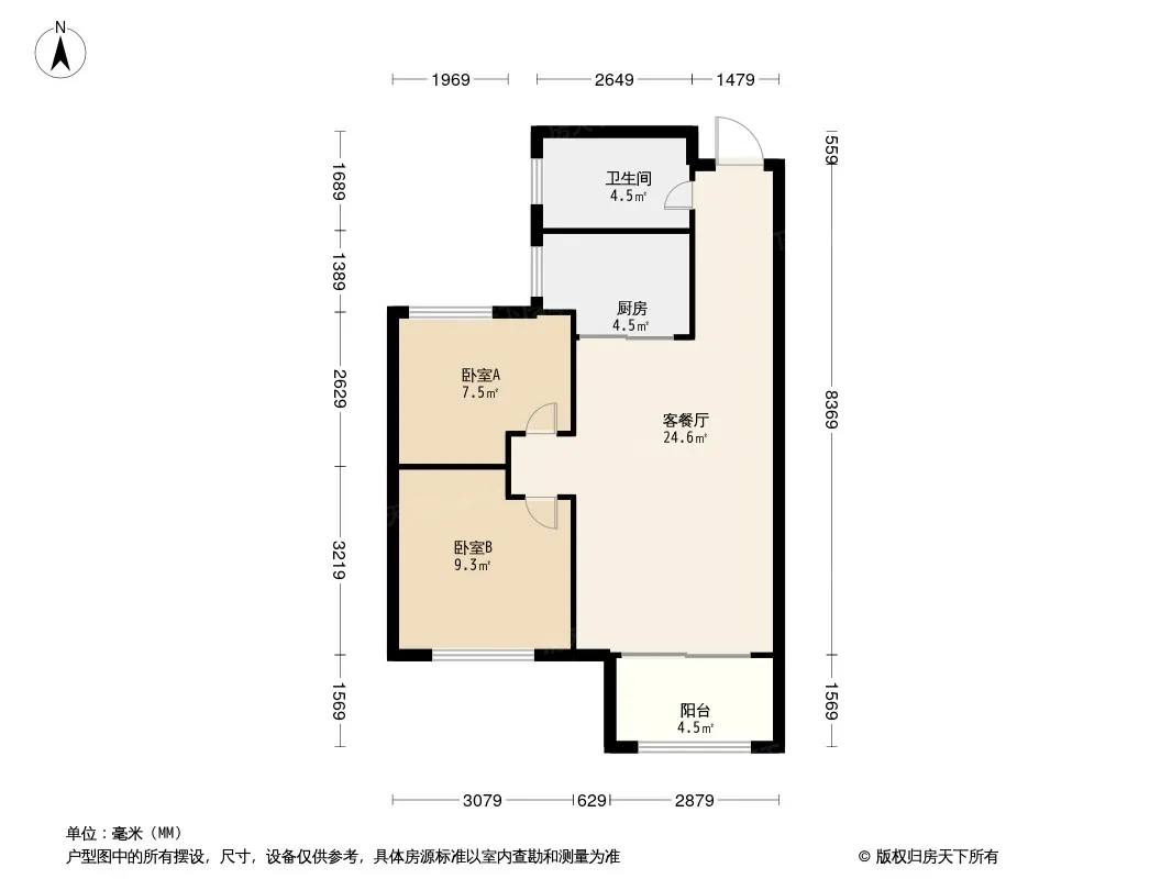 绿地国际城佳荷明都 2室2厅 南 北
