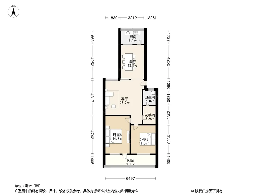 户型齐全,主打户型方正,明卫,明厨,客厅朝南二居