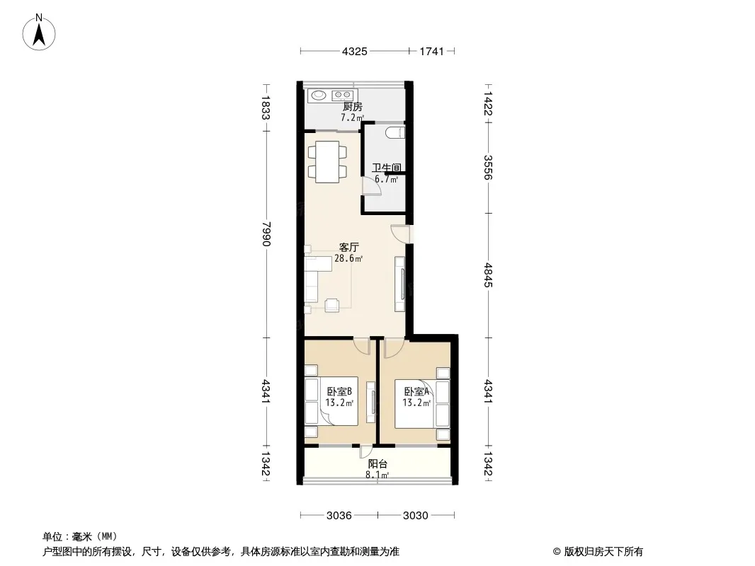 户型齐全,主打户型方正,明卫,明厨,客厅朝南二居