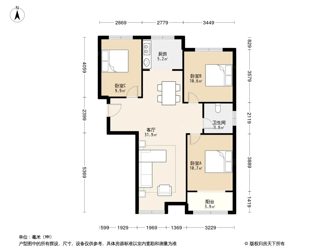 户型齐全,主打主卧朝南,全明格局,干湿分离,餐客分离三居