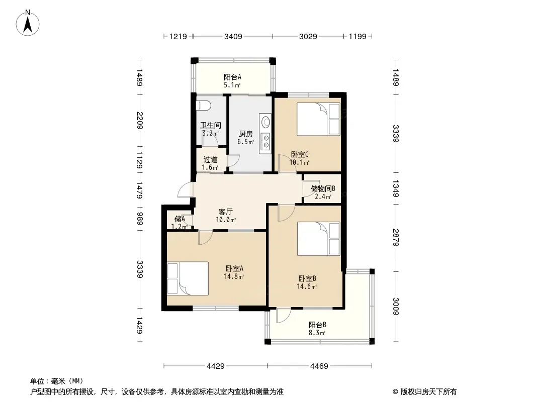 户型齐全,主打户型方正,明卫,明厨,双卧朝南,主卧朝南三居