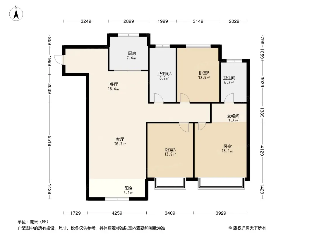 户型齐全,主打南北通透,全明格局三居