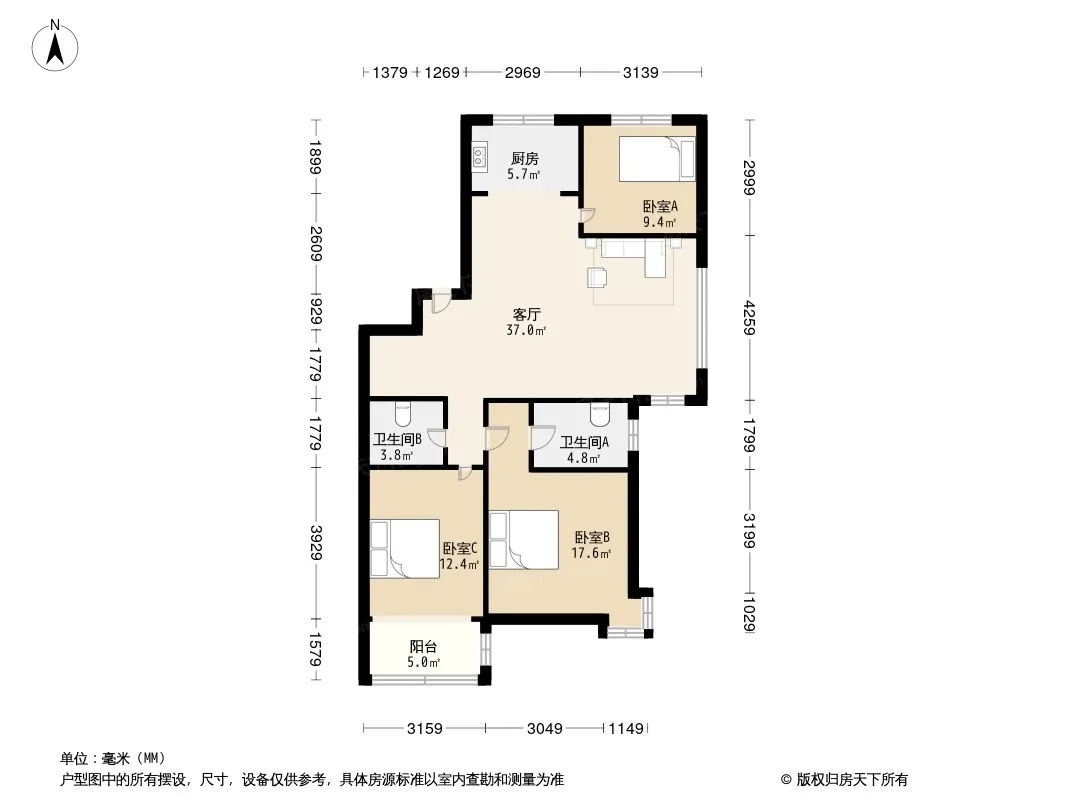 *获取完整户型报告,同时会有免费语音讲解服务